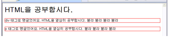 웹 페이지상의 구획을 나누는 목적으로 사용되는 요소.